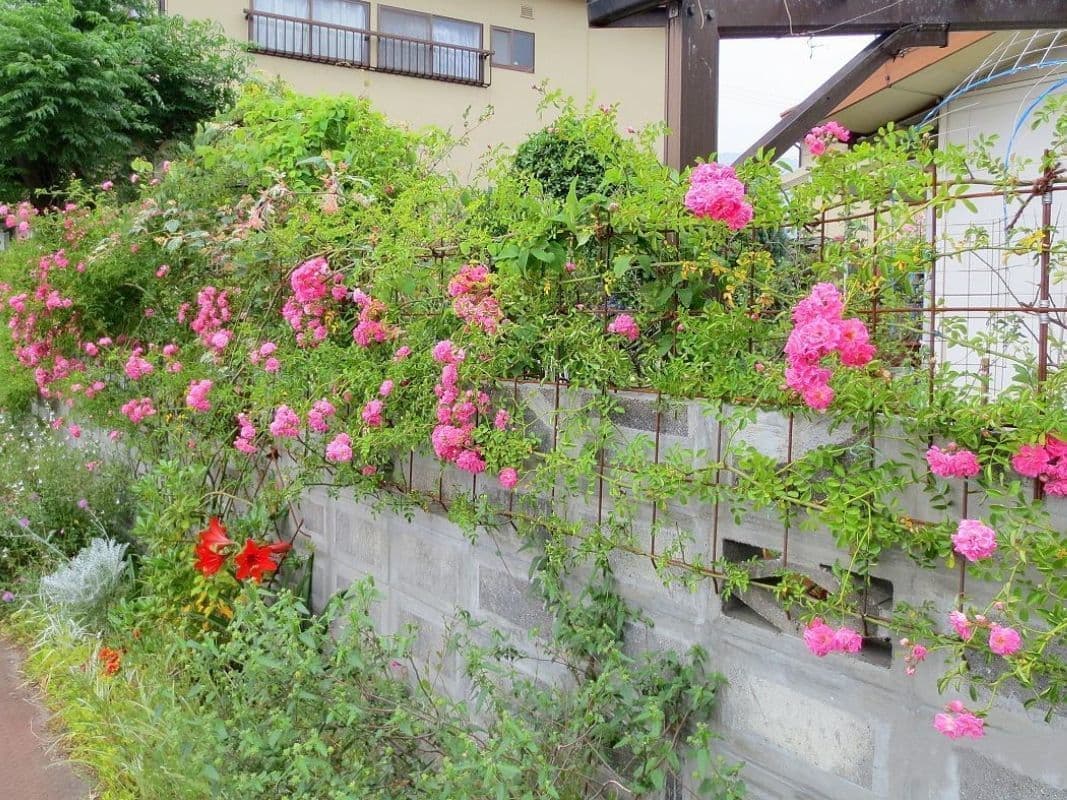 境界線のブロック塀が低いのでバラを誘引できる安価で簡単なフェンスが欲しい。