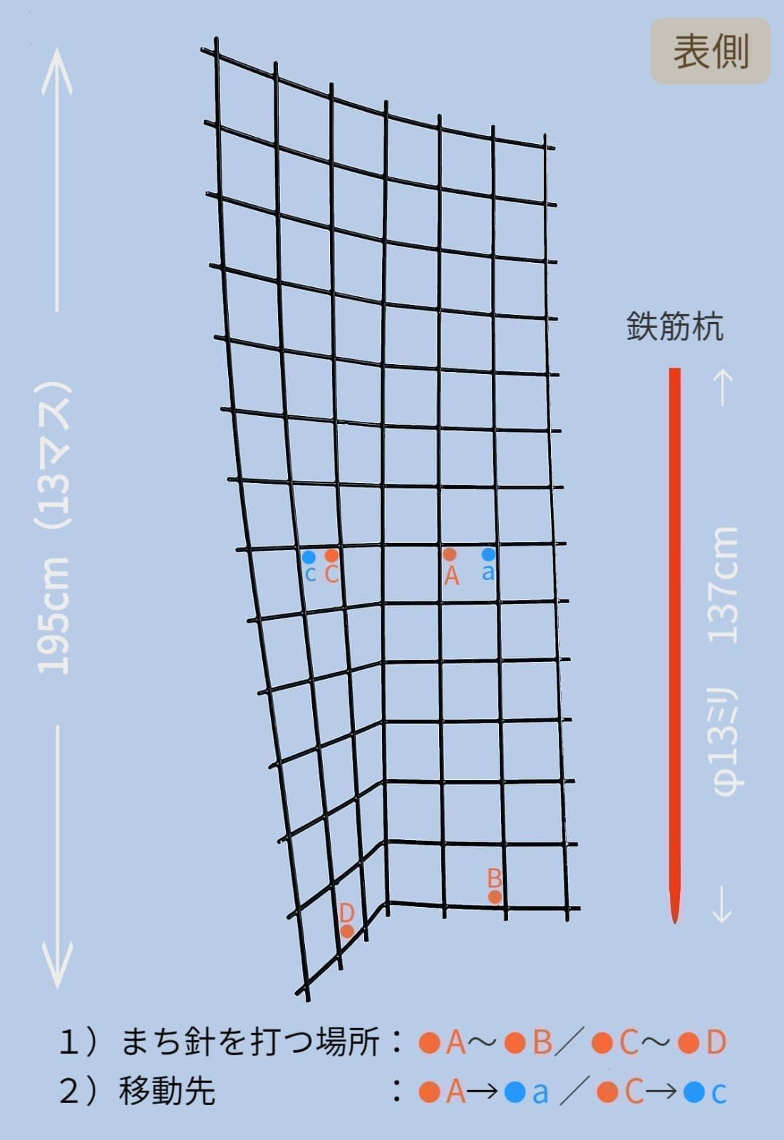 ・鉄筋杭2本(φ13ミリ×1370ミリ)