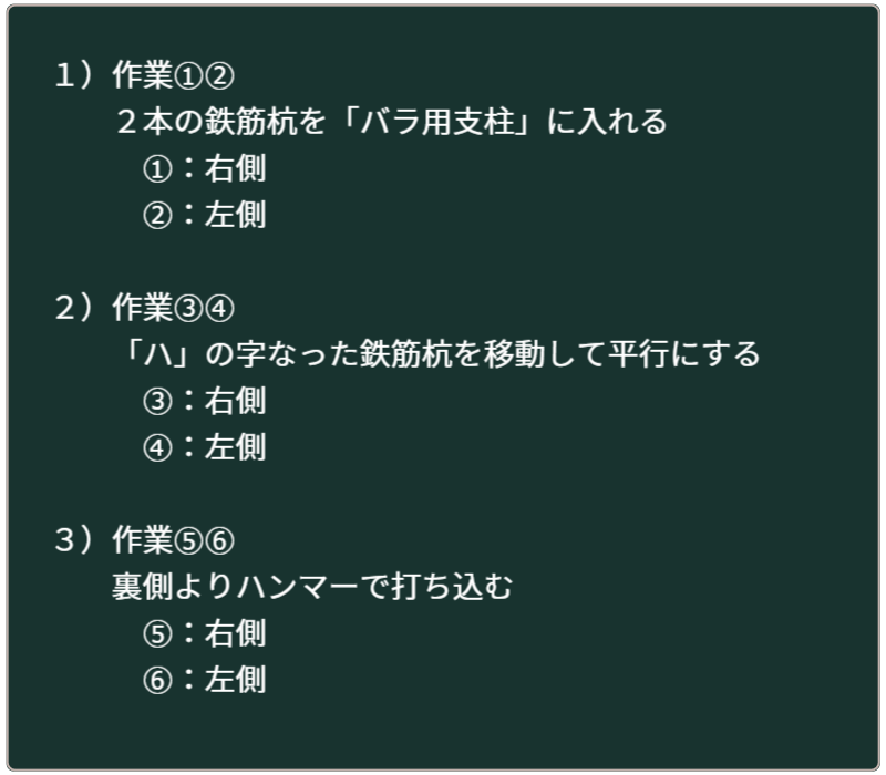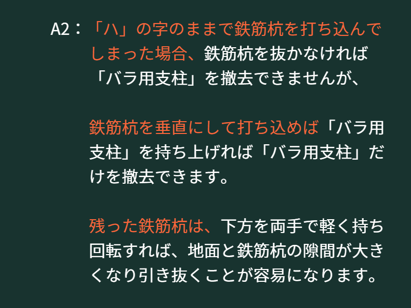 鉄筋杭を打ち込むことや