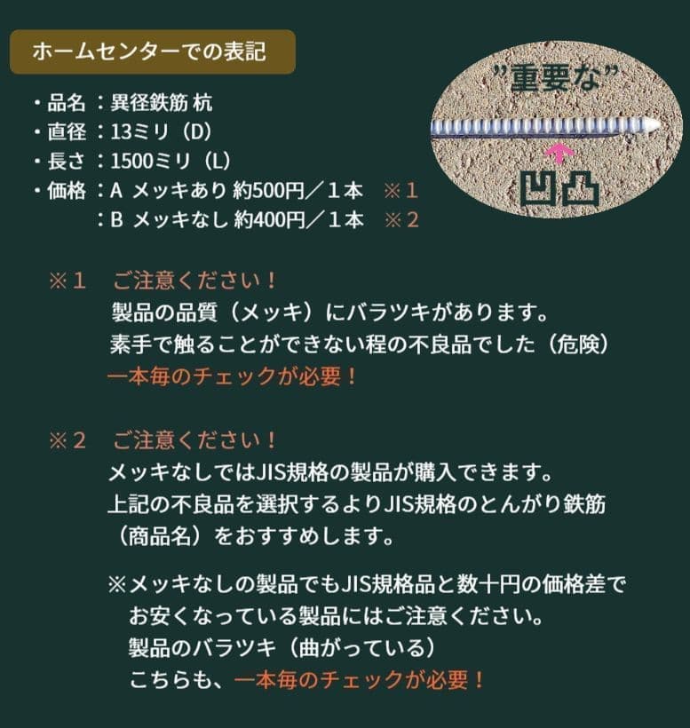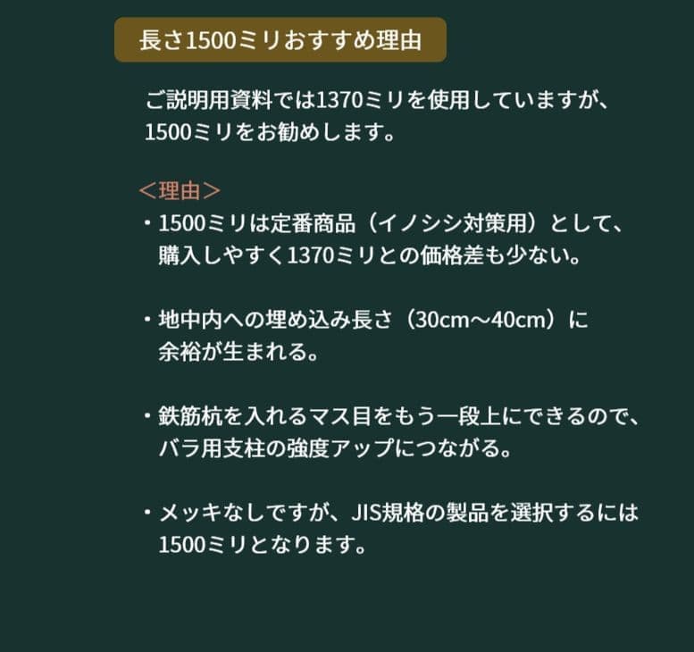 鉄筋杭は150cmも可能(おすすめ)