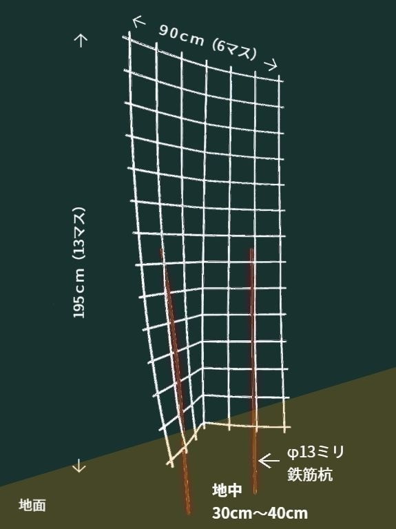 バラ用支柱は室内ドア約1枚分