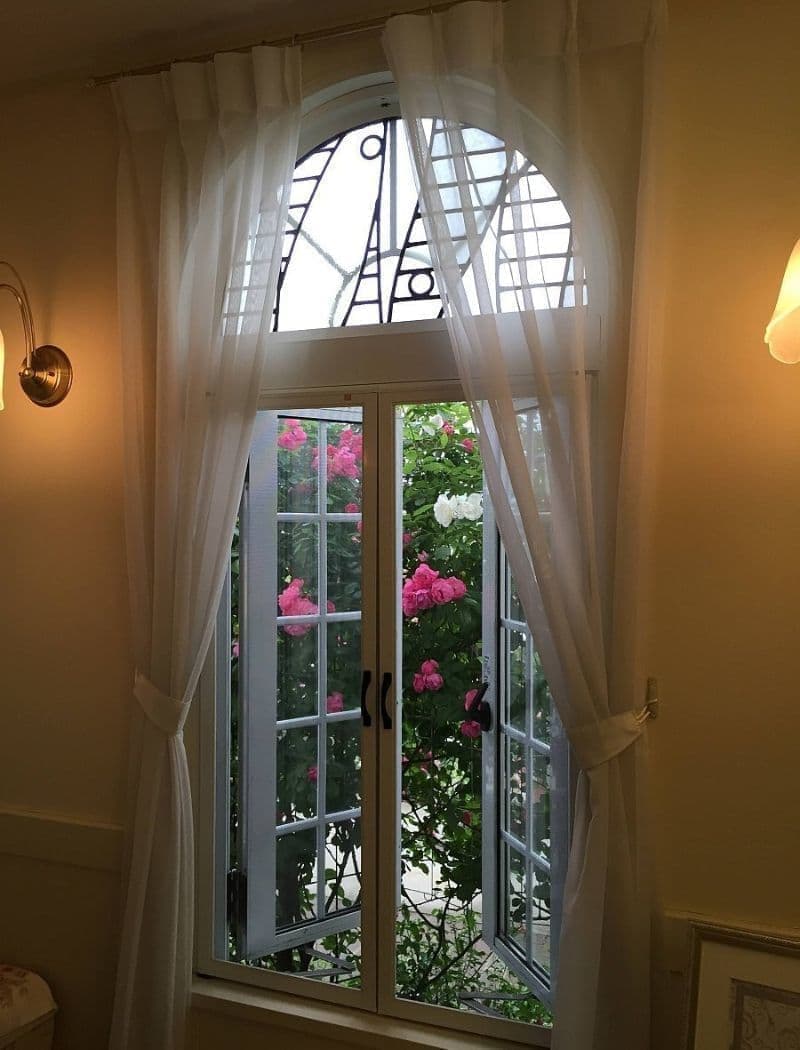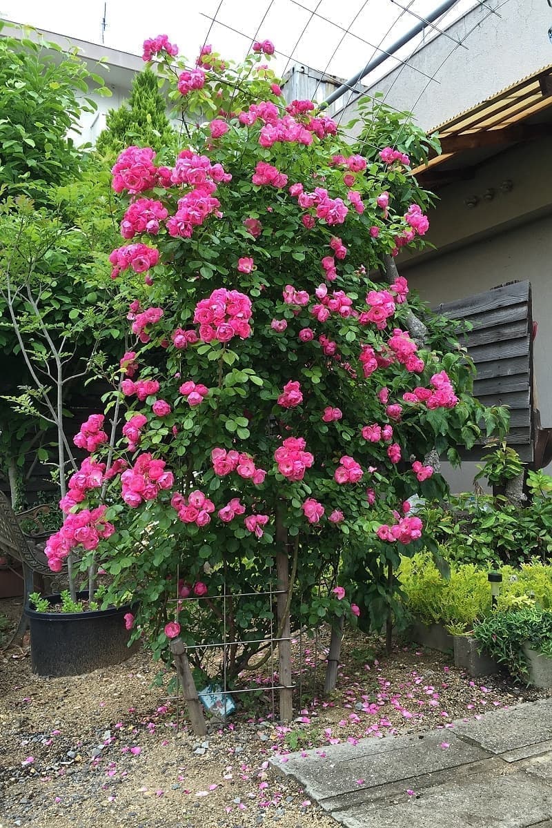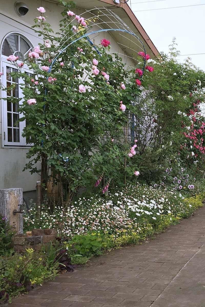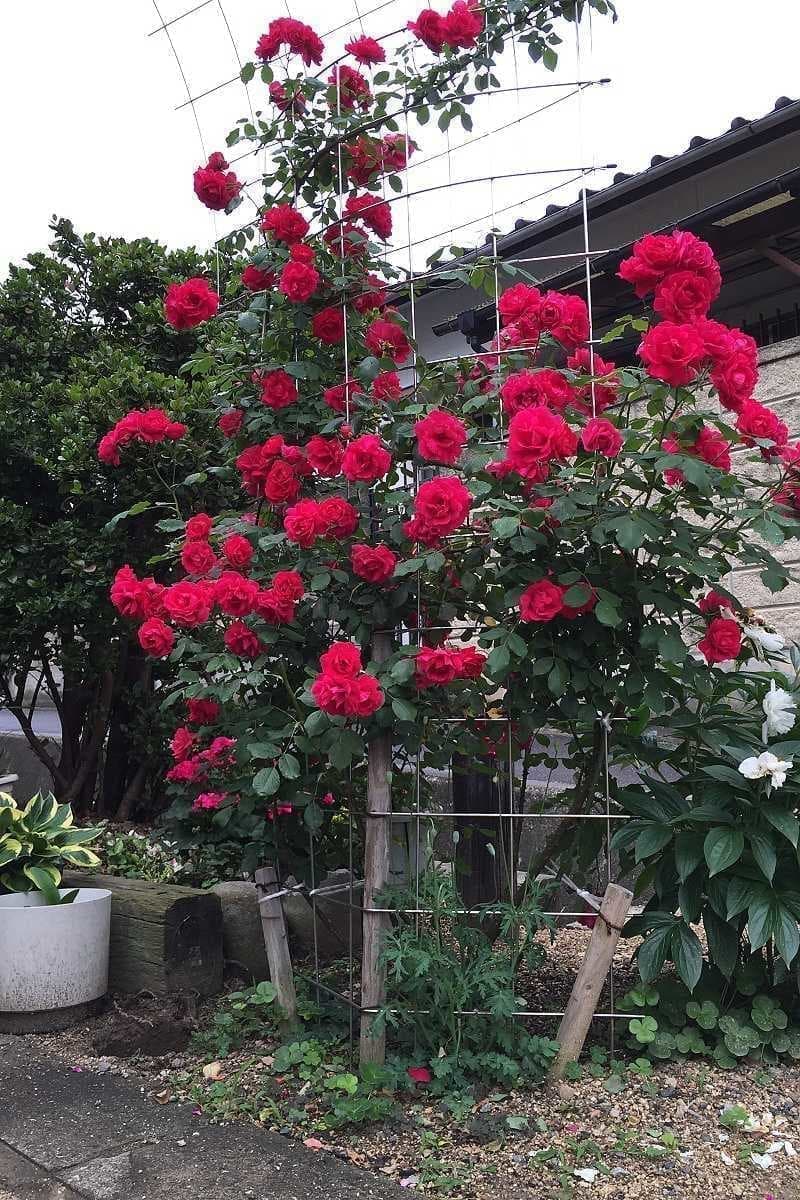 格子状(15cm角)のマス目を特徴とする「バラ用アーチ」は、ネジや部品を使用しないのでバラの邪魔をしません(特許第5367141号、意匠登録第1482209号)
