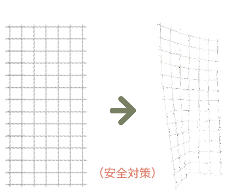 ワイヤーネット(ダイソー)の外枠を外すと「イノシシ用フェンス」と同じ危険な状態になります。